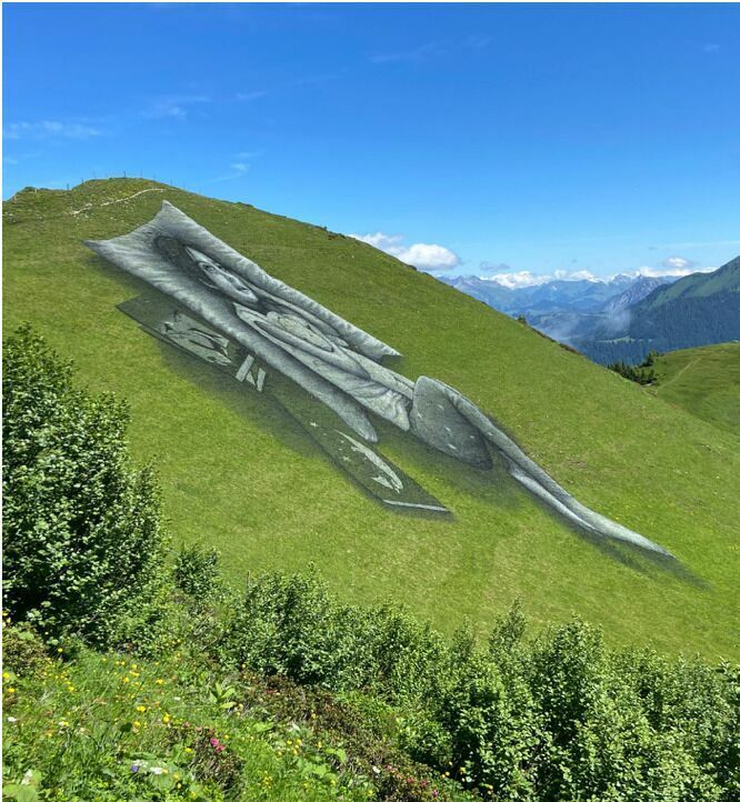 Saype is back in Villars-sur-Ollon with an ephemeral work that was kept secret until its creation.